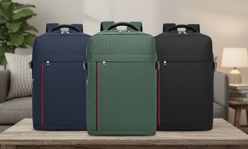 Groupon ofrece esta mochila de cabina con ribete rojo, vendido por Halterner Technologie GmbH