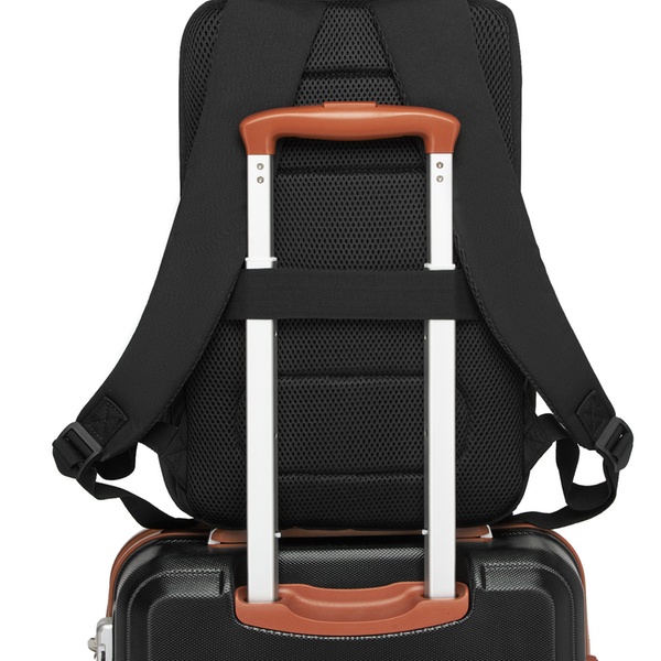 - Correa trasera integrada para deslizar sobre el asa del equipaje