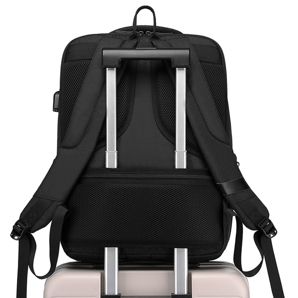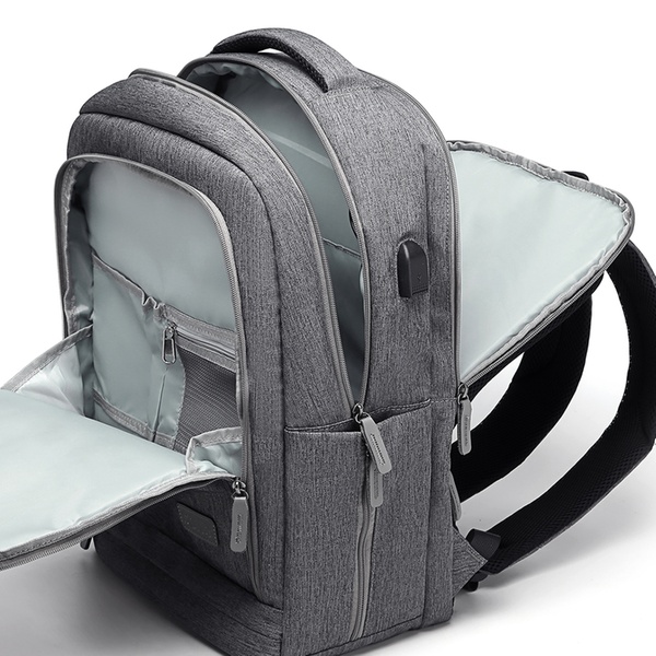 Diseñada con un puerto USB integrado, esta mochila permite cargar dispositivos sobre la marcha, perfecta para viajar y trabajar