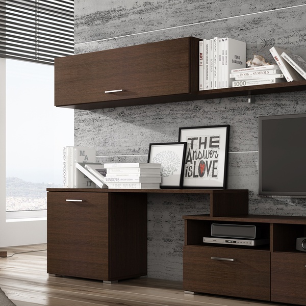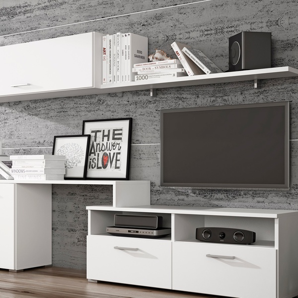 Muebles de salón compactos y ajustables, disponibles en blanco y wengué