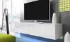 Un mueble de televisor con diseño flotante y luz LED, disponible en varios acabados