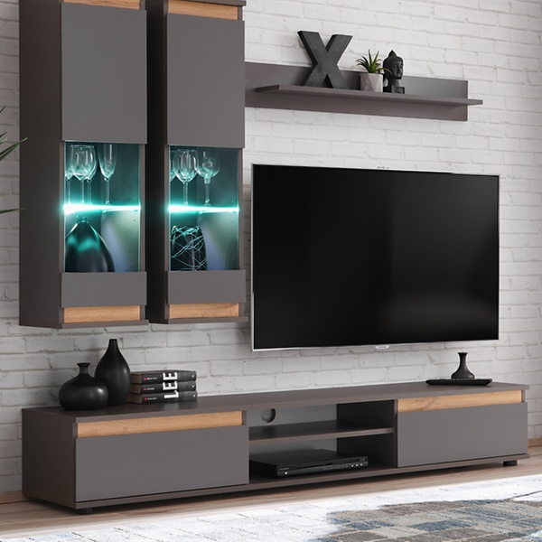 - 1 x mueble TV de 175 x 28 x 37 cm (2 cajones + compartimiento abierto)