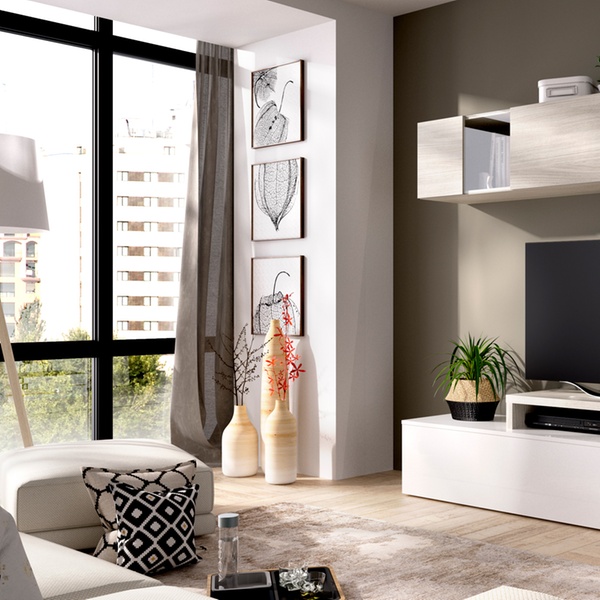 - Colores disponibles: blanco brillo y natural, blanco brillo y gris