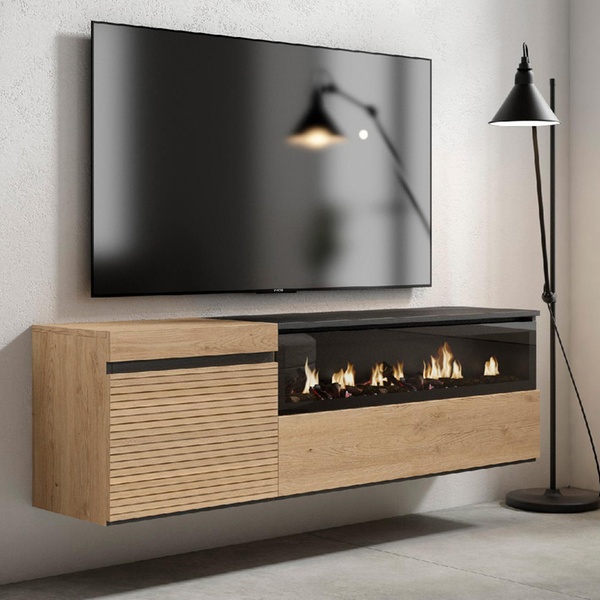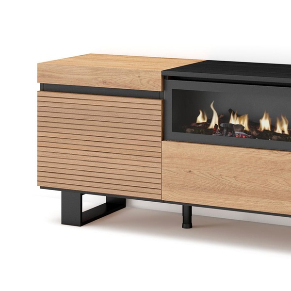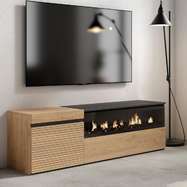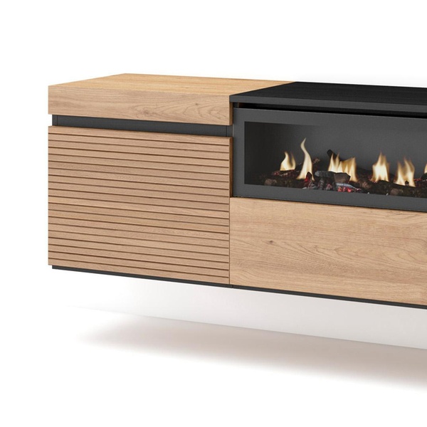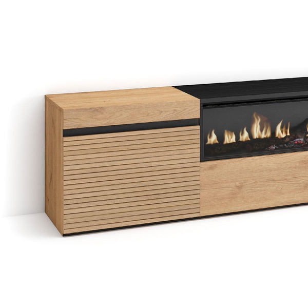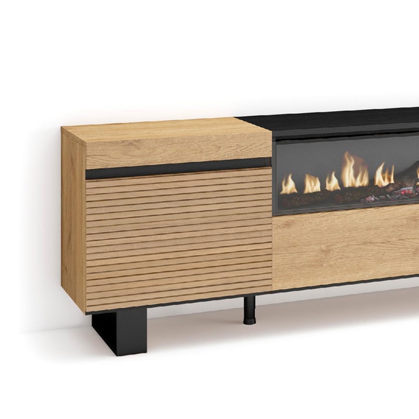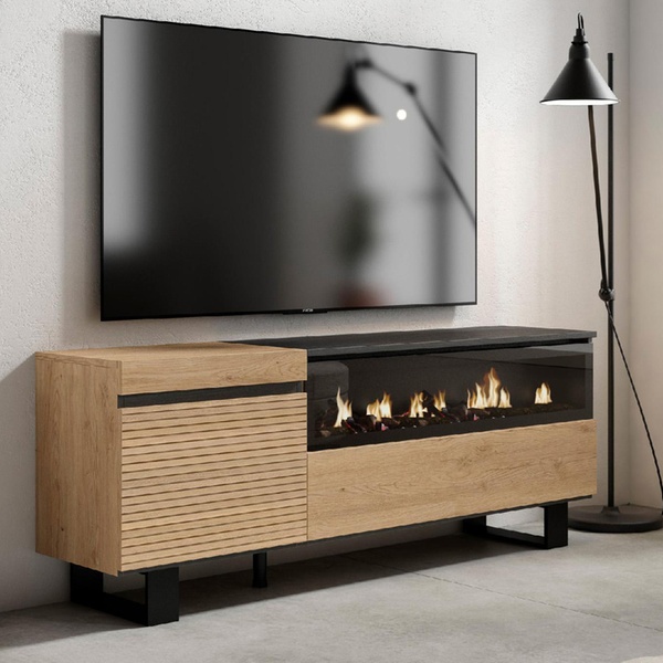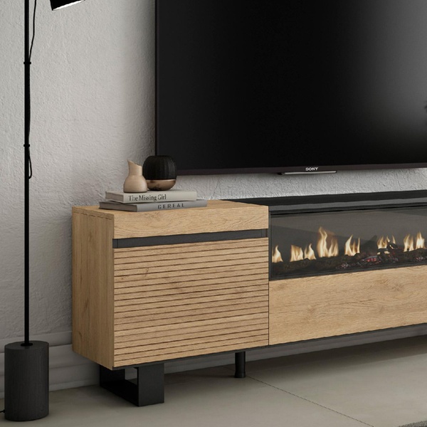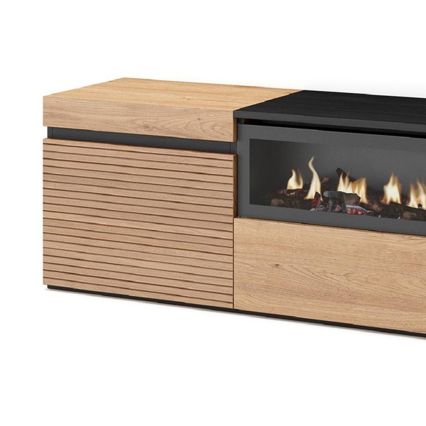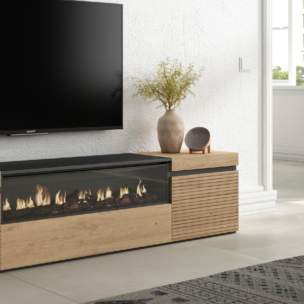 Groupon ofrece este mueble para TV con acabado en roble y opción a chimenea eléctrica, vendido por Innovation Home Furnish SL