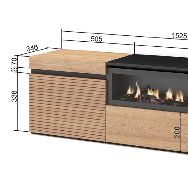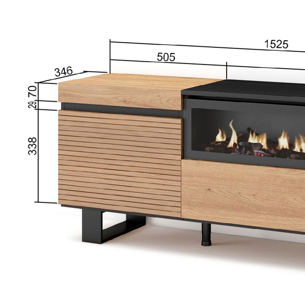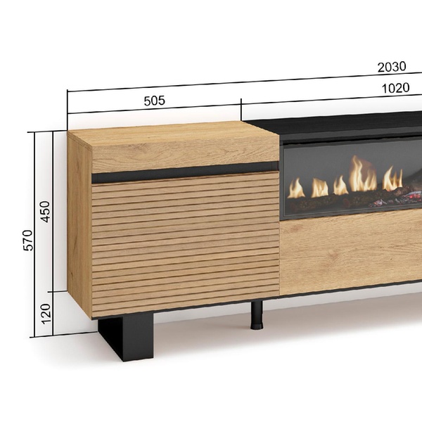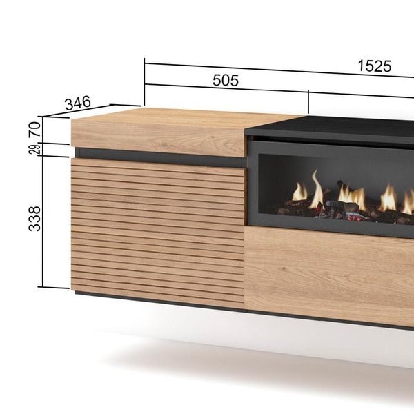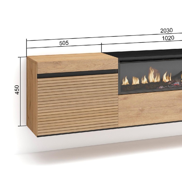 - Módulo con hueco para la chimenea eléctrica, o para almacenar dispositivos electrónicos, con puerta abatible