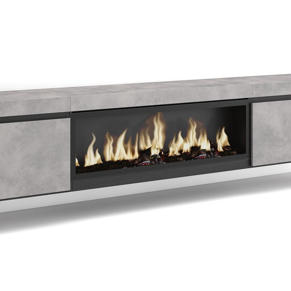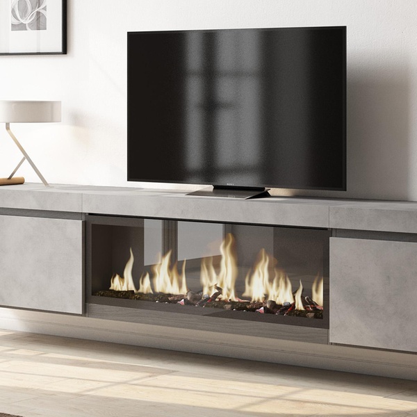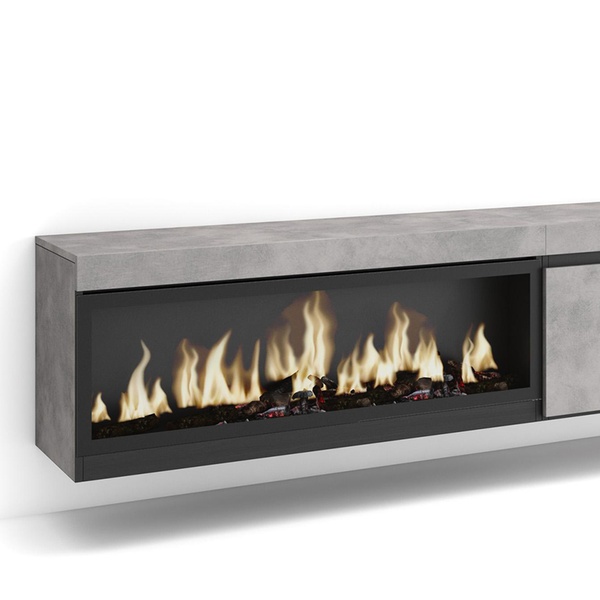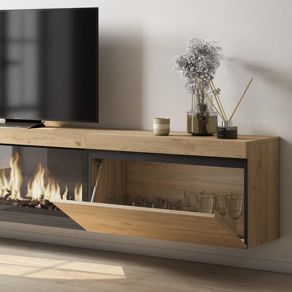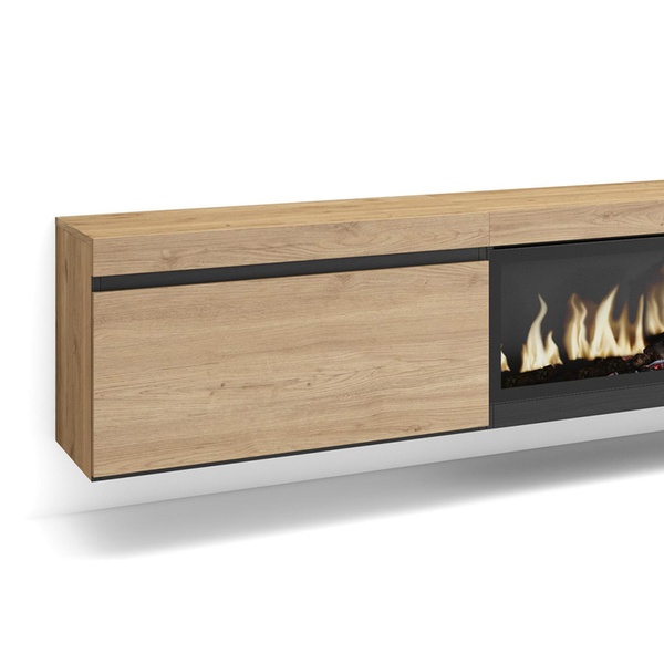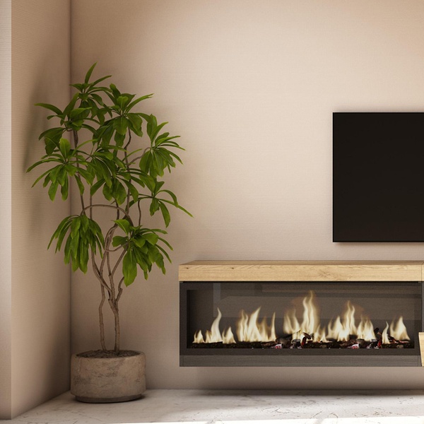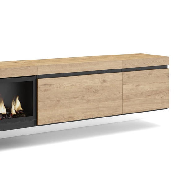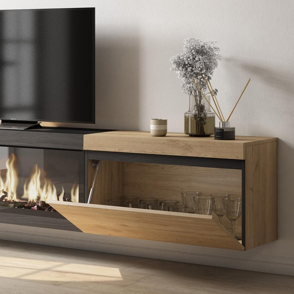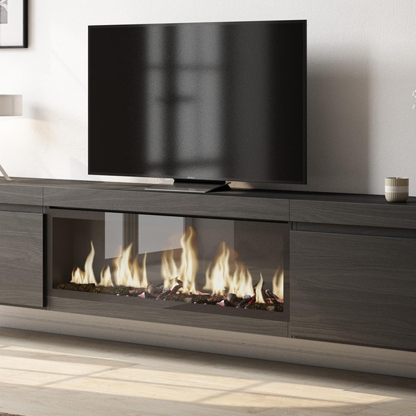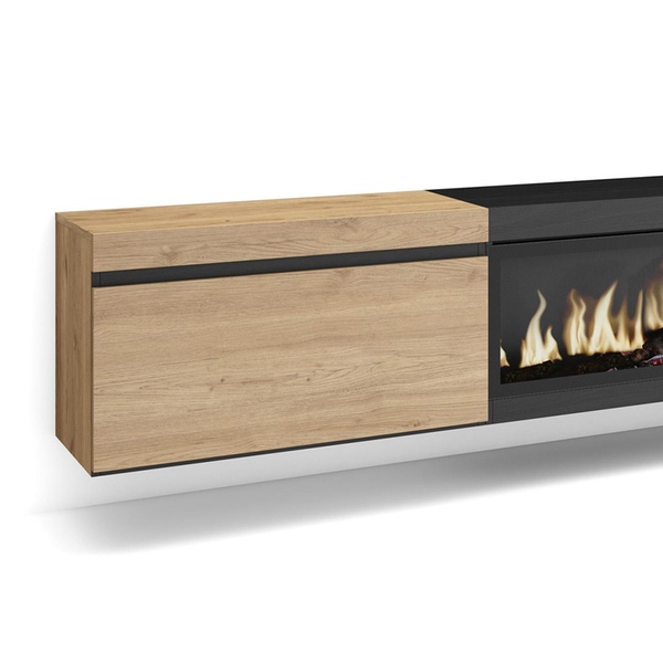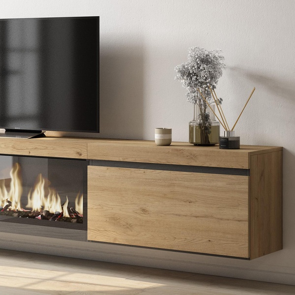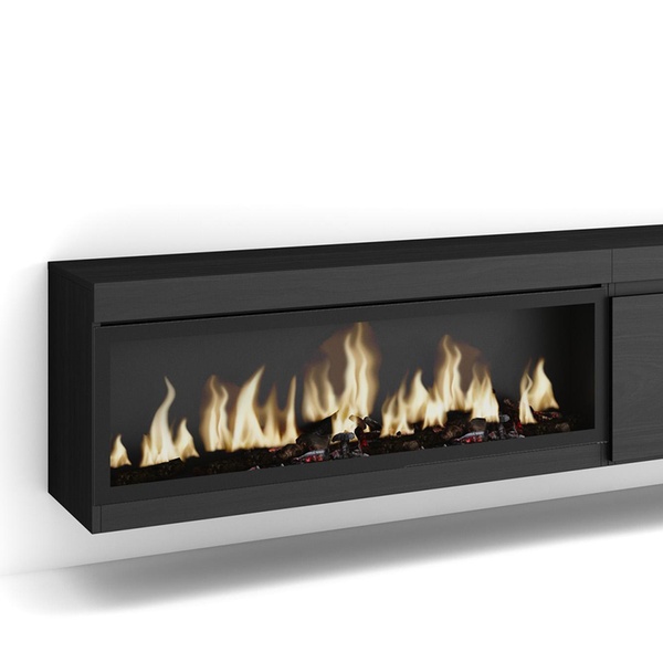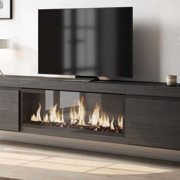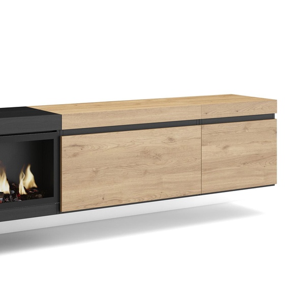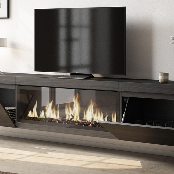 Este mueble para el televisor combina estilo moderno y funcionalidad, con posibilidad de elegir el modelo con chimenea eléctrica led que simula un efecto de fuego en 3D