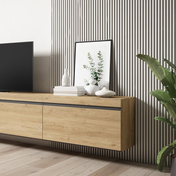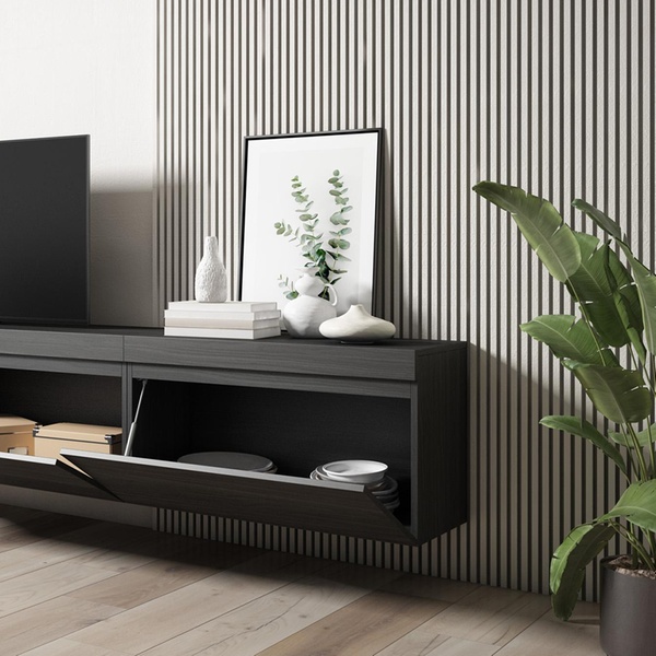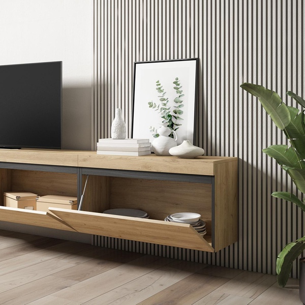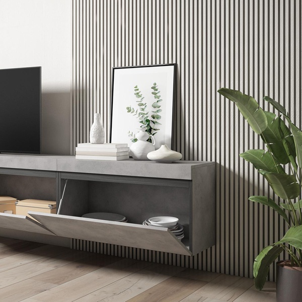 Mueble de TV en suspensión con 3 módulos y espacio de almacenaje