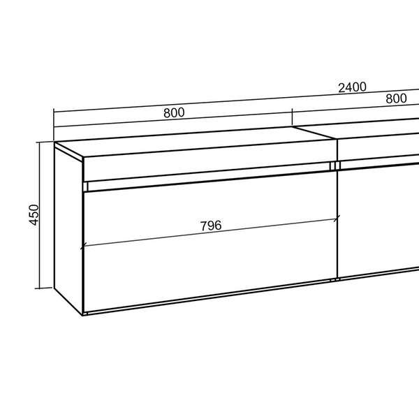 • Tres módulos con puerta batiente, con gran capacidad de almacenaje. Medidas de cada módulo: 80 cm de ancho, 45 cm de alto y 35 cm de fondo.