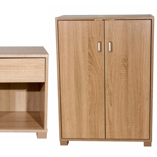 Estos muebles están chapados en papel con acabado veteado simulando madera de color natural que proporciona un look elegante