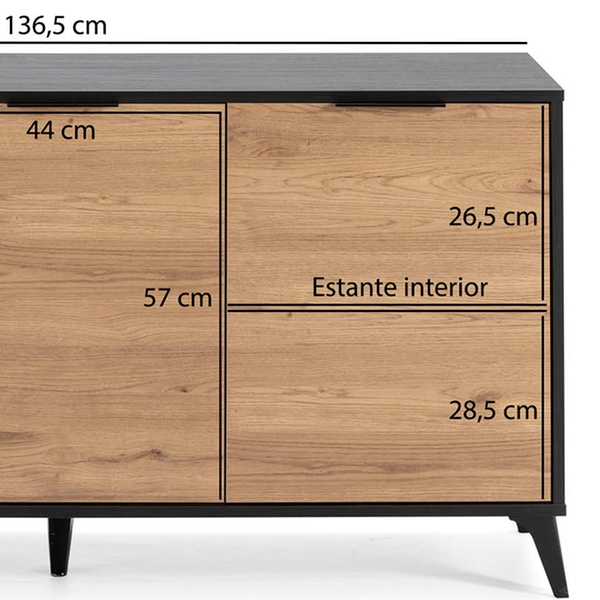 - Medidas: 136,5 cm (ancho), 40 cm (profundo) y 72,5 cm (alto)