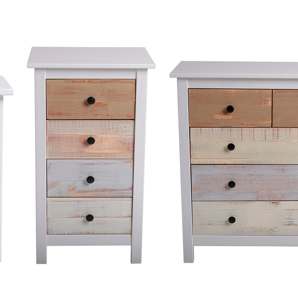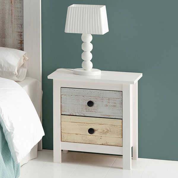 Elegantes muebles de madera de pino macizo en color blanco, ideales para dar a la habitación un toque rústico