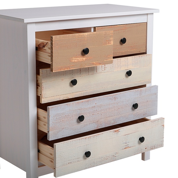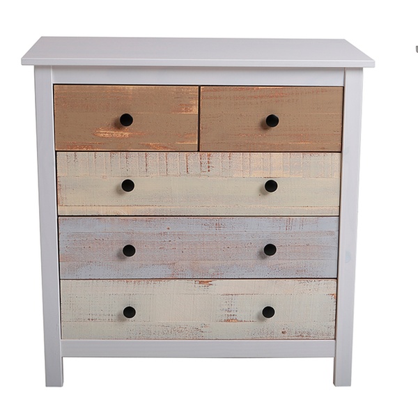- Tres cajones grandes y dos pequeños con tiradores metálicos en color negro mate