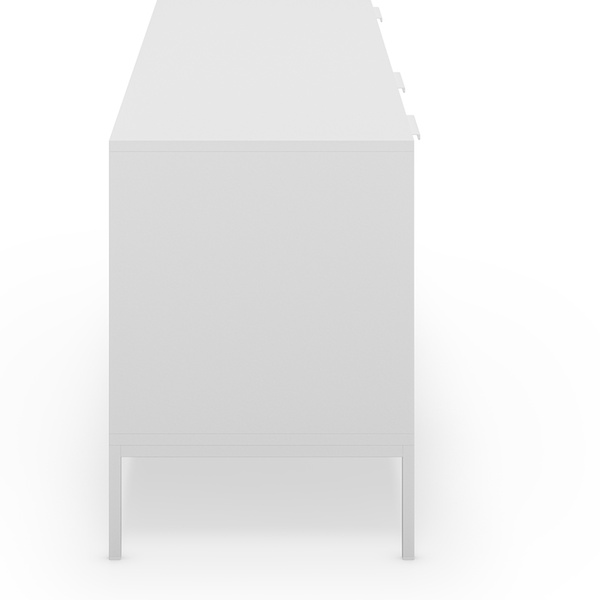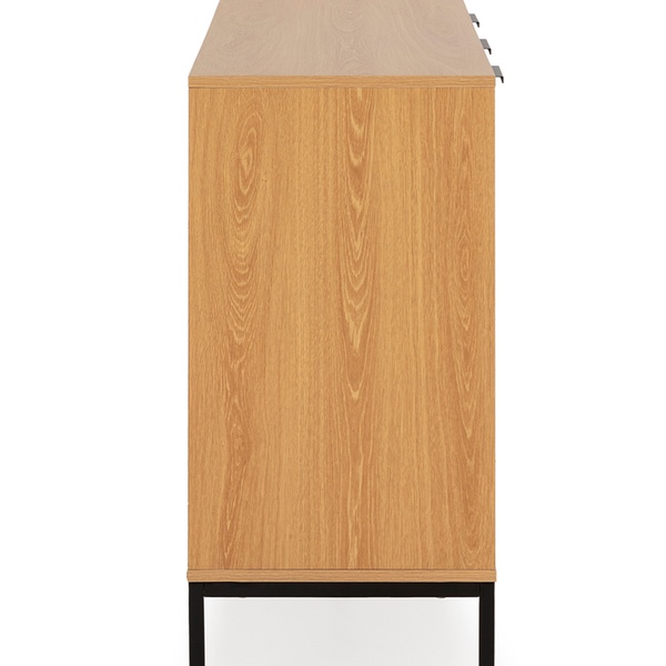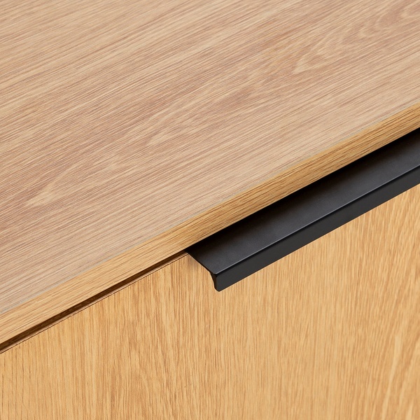 - Patas altas y funcionales: facilitan la limpieza y combinan con los tiradores metálicos alargados.