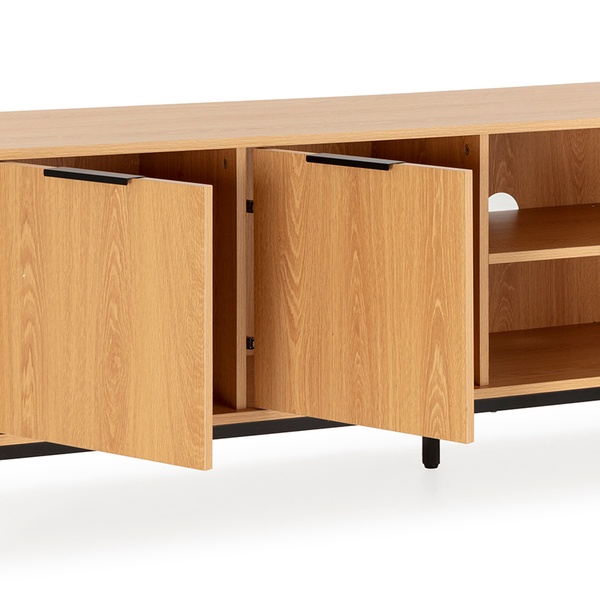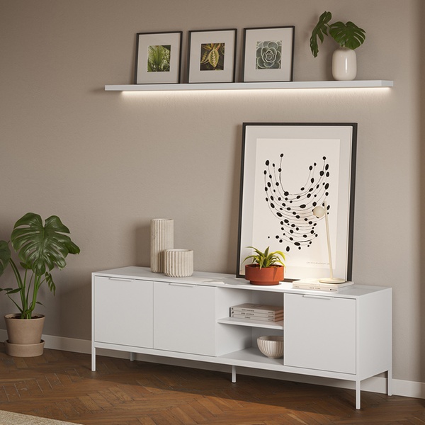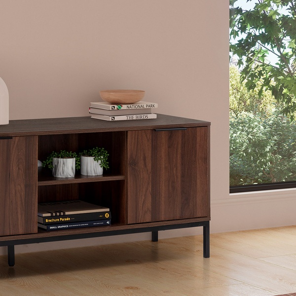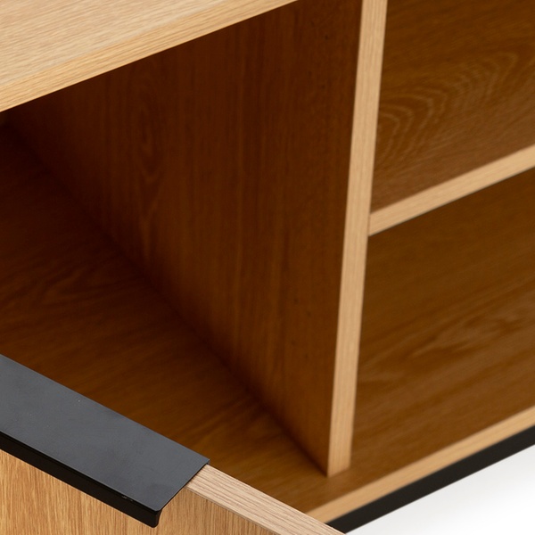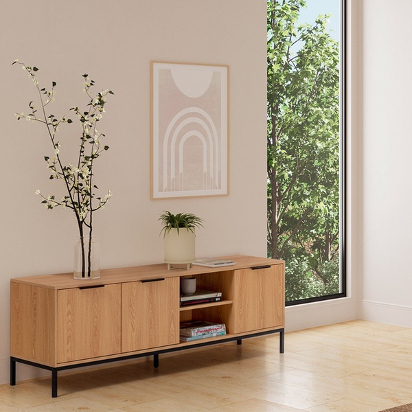 - Diseño funcional con almacenaje: cuenta con 3 puertas y 2 huecos, perfectos para organizar dispositivos, libros o decoración.
