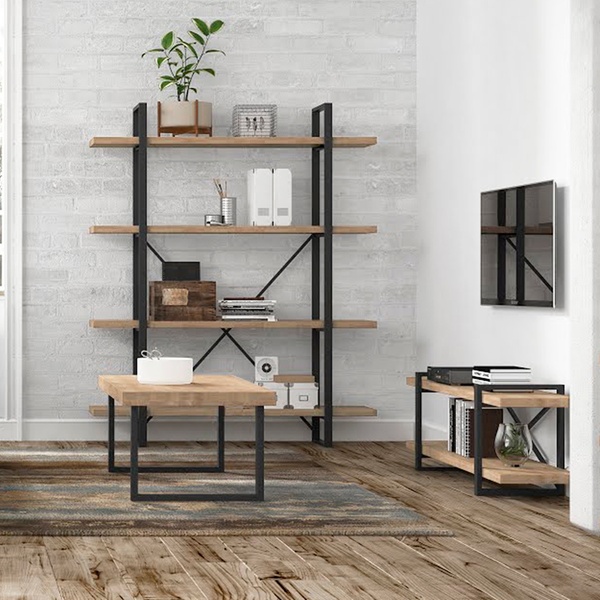 - Mesa de escritorio con estantería integrada de estilo industrial
