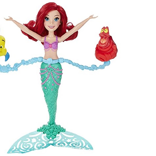 Una muñeca Ariel con sus dos amigos Sebastian y Flounder, ideal para divertirse jugando en el agua