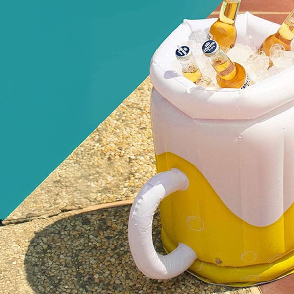 Groupon ofrece esta nevera inflable con forma de jarra de cerveza, vendida por Mesolab Services Ltd