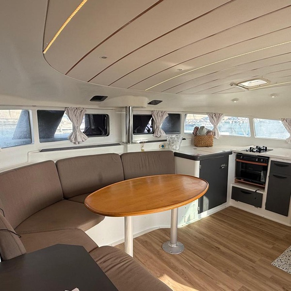 Todas las opciones incluyen salida grupal de 1 hora de navegación, bebidas y snacks, a bordo del Lagoon 410, con capacidad para 12 personas más capitán y marinero. El catamarán cuenta con 4 cabinas dobles, dos baños, equipo de sonido, salón comedor y solárium acolchado en cubierta.