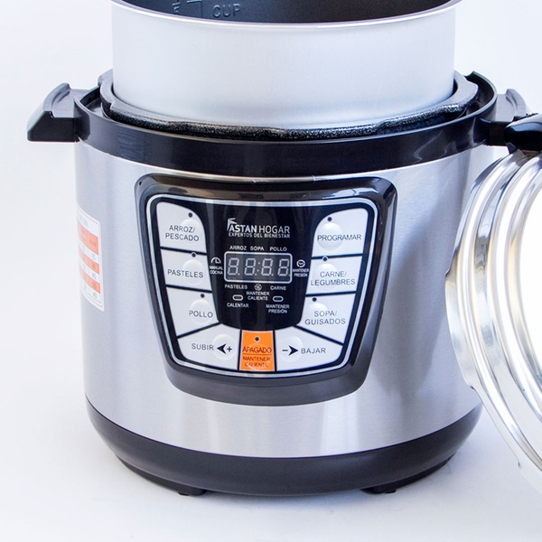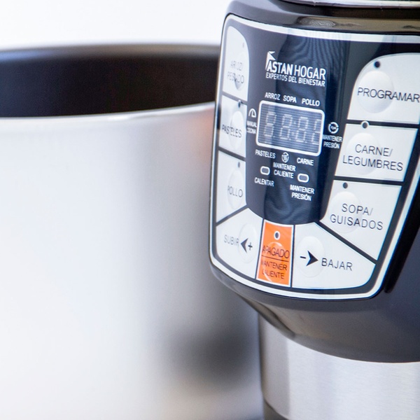 Olla eléctrica programable con diferentes funciones de cocción, control de tiempos, función de ajuste de tiempos y mantener caliente