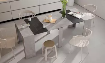 - Superficie de cerámica de 12 mm con acabado en mármol gris mate.