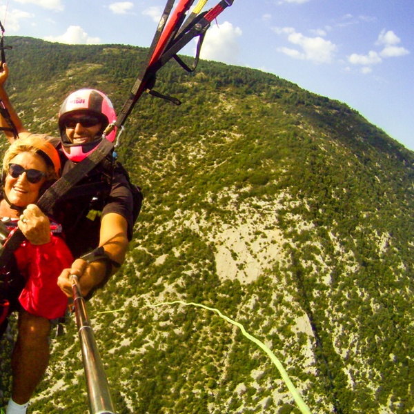 Un vuelo en parapente de 15 a 20 minutos con dos maniobras acrobáticas y reportaje fotográfico que se entregarán en un USB que debe aportar el usuario.