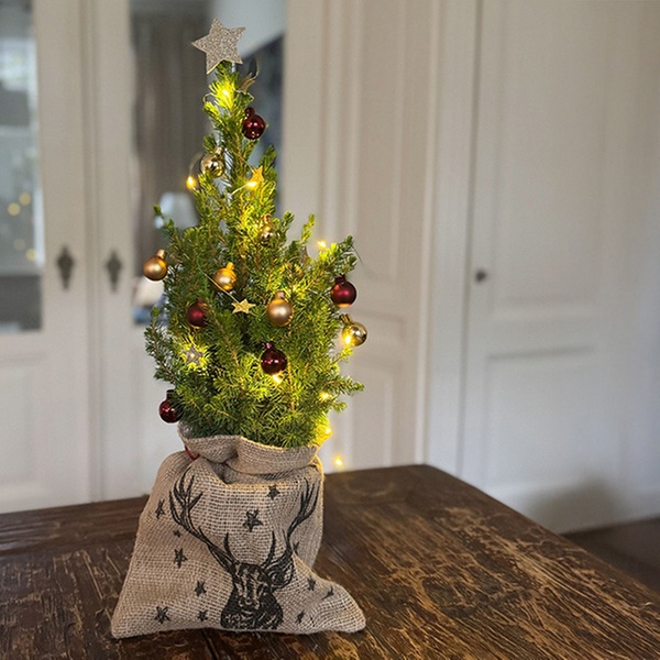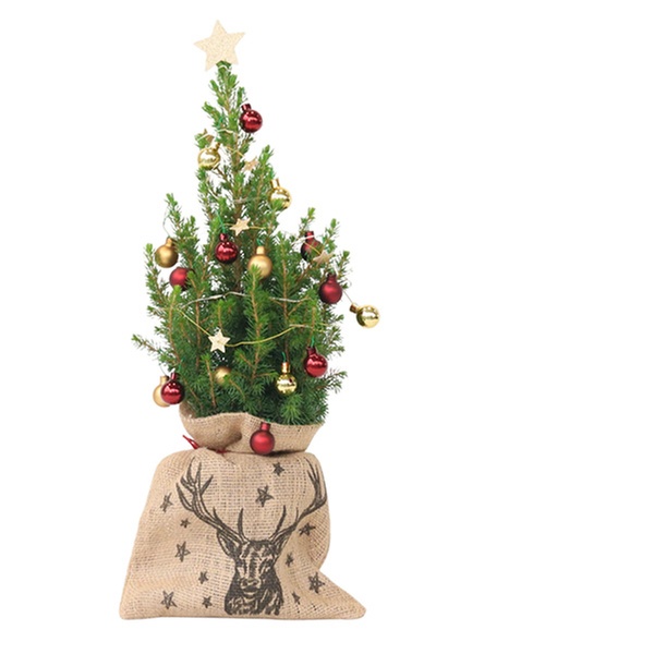 Set de decoración Picea P15 – Mini árbol de Navidad en bolsa de yute