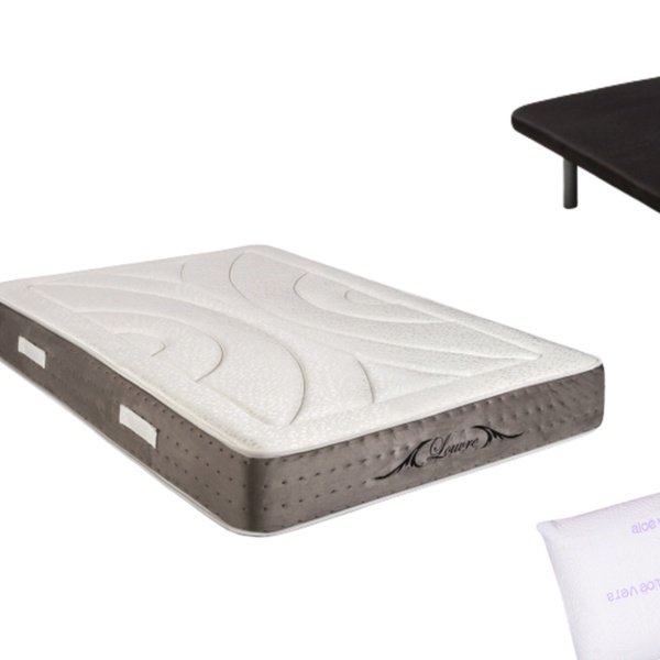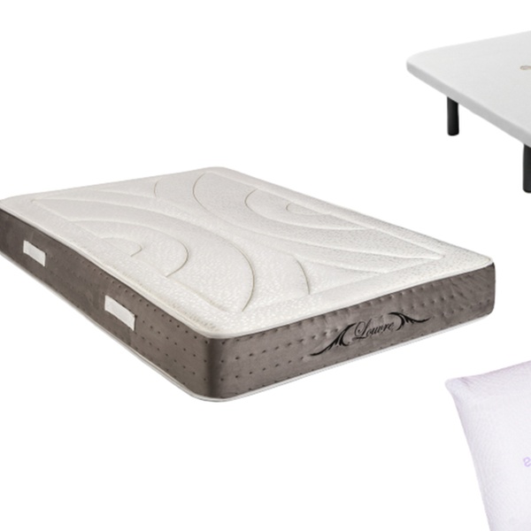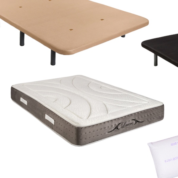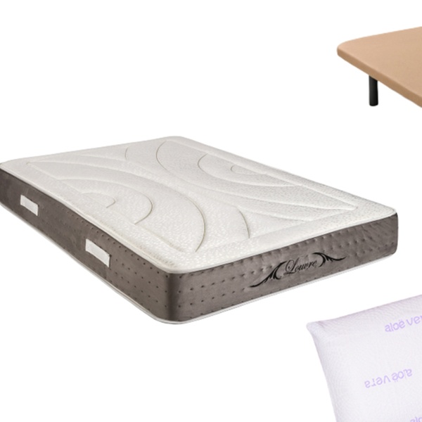 Pack completo de base tapizada con colchón de gran adaptación de 24 cm y almohada de núcleo viscoelástico
