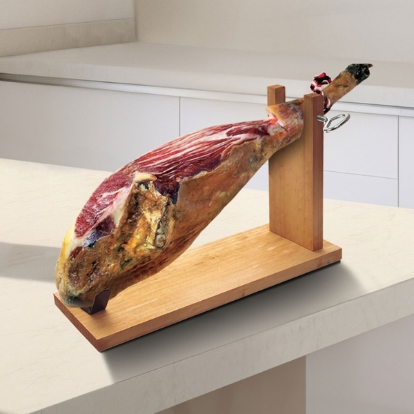 Soporte para jamón fabricado en madera de pino con certificación PEFC.