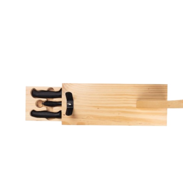 - Set de 4 piezas para cortar jamón, con cajón integrado en la base.