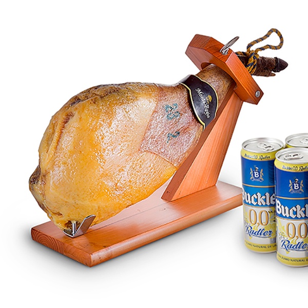 Opción 1 - Pack de paleta de jamón y 8 cervezas Buckler Radler 0.0%: