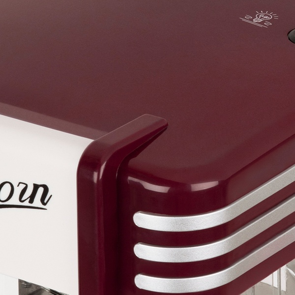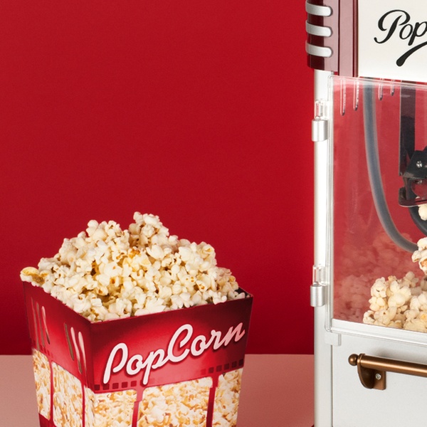 Caracterizada por un diseño retro y con un bol de 50 g de capacidad, esta palomitera es ideal para los amantes de las palomitas en casa