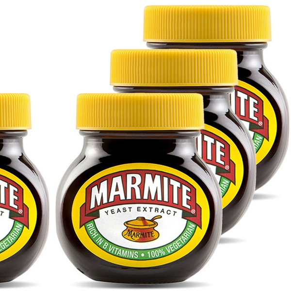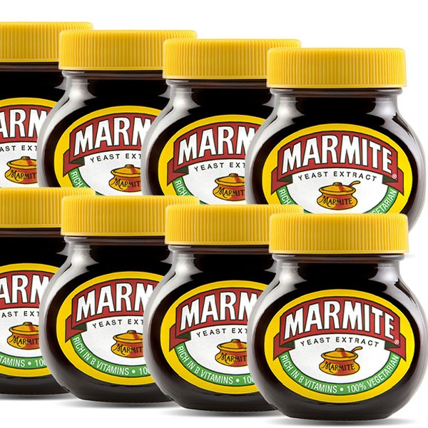 - Pack de 6 o 12 pastas para untar Marmite con extractos de levadura de 125 g