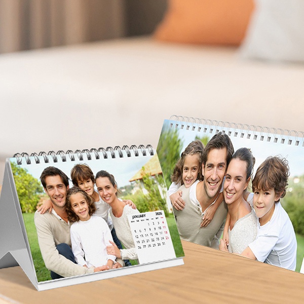 Nuestros calendarios personalizados te permiten inmortalizar tus fotos favoritas a lo largo del año, desde recuerdos especiales, paisajes que te inspiran, hasta los momentos más importantes con tus seres queridos. Con impresión fotográfica de última generación, cada mes se convierte en una oportunidad para revivir esos recuerdos. Hechos con papel resistente de 250 g/m², disfrutarás de tus imágenes mes a mes sin perder su calidad.