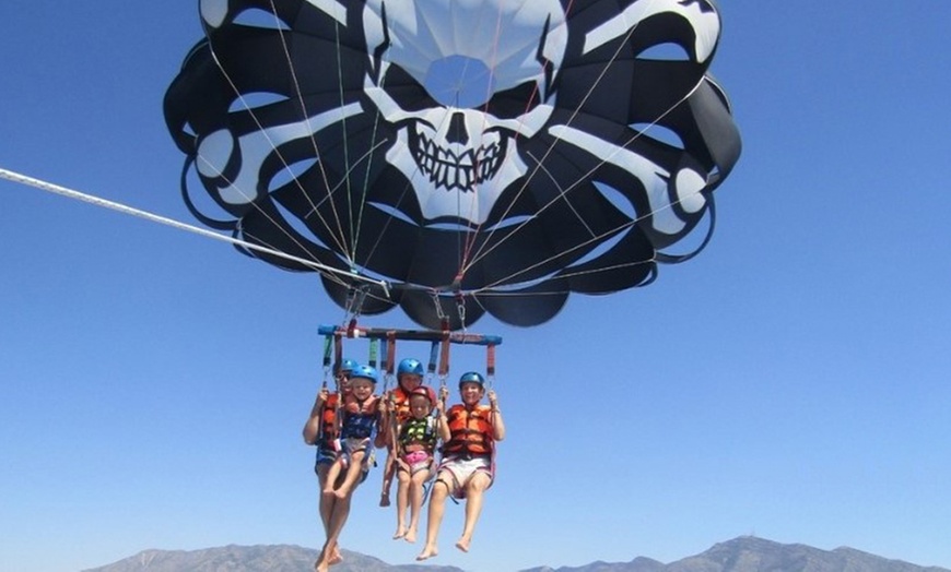 Descubre la sensación de libertad mientras surcas los cielos con Pirate Parasailing en Fuengirola. Goza de las vistas panorámicas mientras planeas entre el cielo azul y las cristalinas aguas del Mediterráneo. ¡Atrapa esta oferta y prepárate para una aventura emocionante!