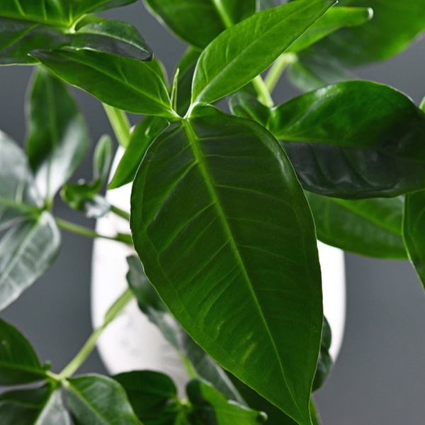 - Las hojas del Syngonium “Trileaf Wonder” crecen en grupos de tres, con una grande en el centro
