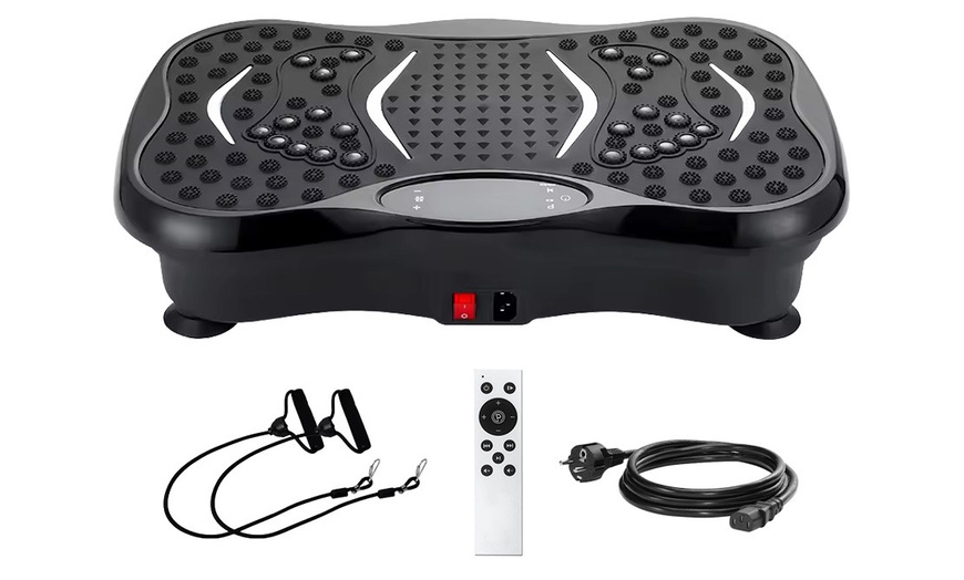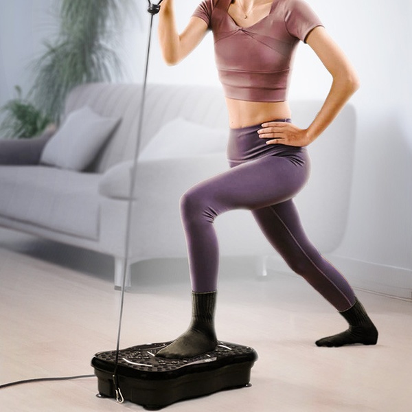 - Plataforma vibratoria con bandas de resistencia para un entrenamiento corporal completo en casa