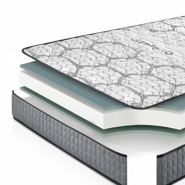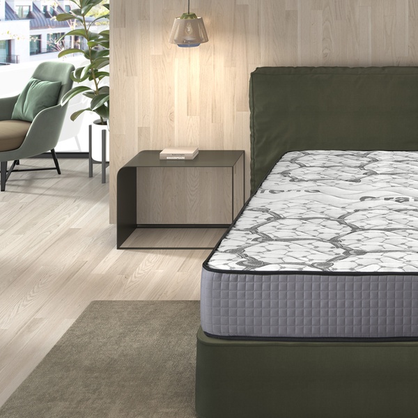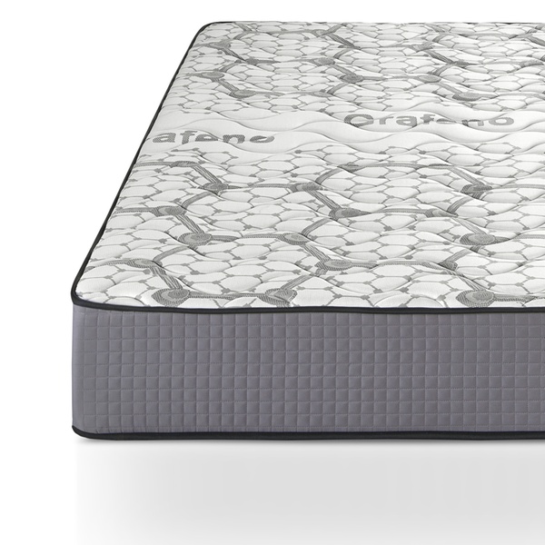 El colchón grafeno está acolchado con 3 cm de viscoelástica, garantizando un nivel de confort superior, junto con un núcleo que impide deformaciones en el mismo y garantiza la independencia del descanso. El lateral del colchón, está acolchado con material transpirable, y en todos sus tejidos cuenta con tratamientos antiácaros y anti-bacterias