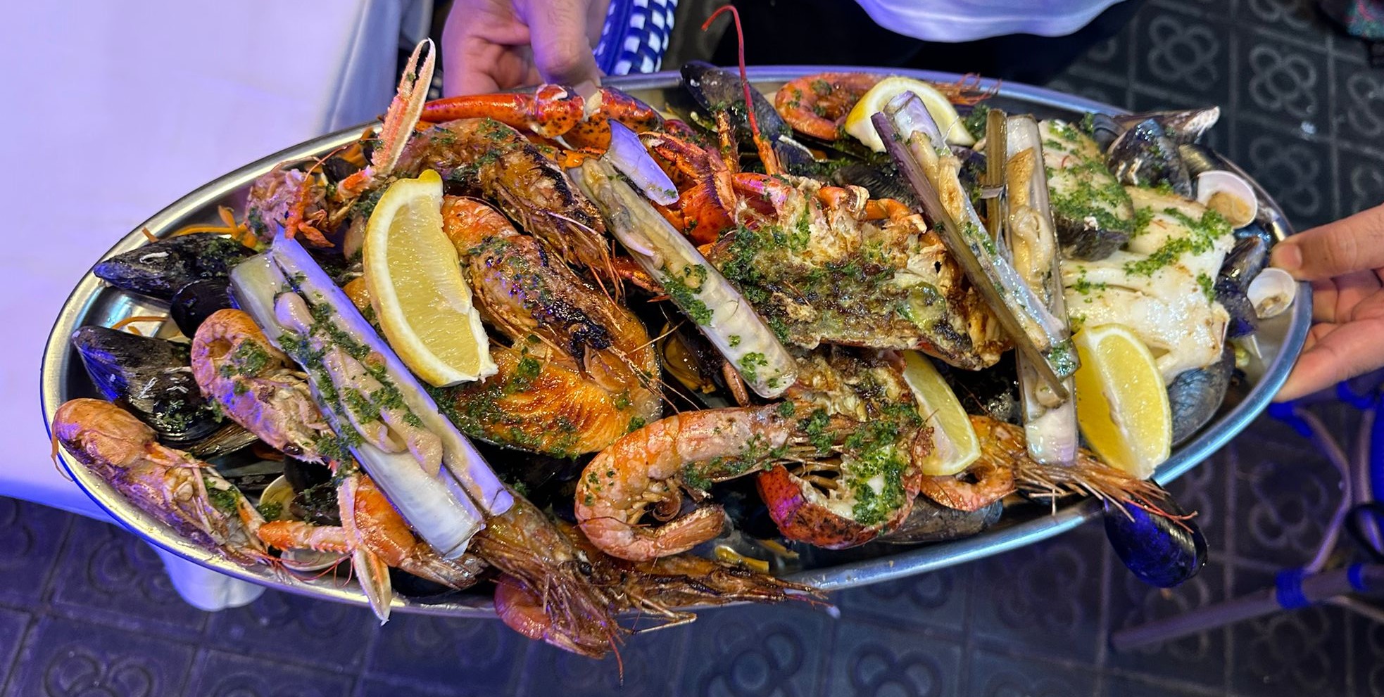 - Parrillada de pescado y marisco (mejillones, gambas, cigala, navajas, salmón, merluza y sepia)