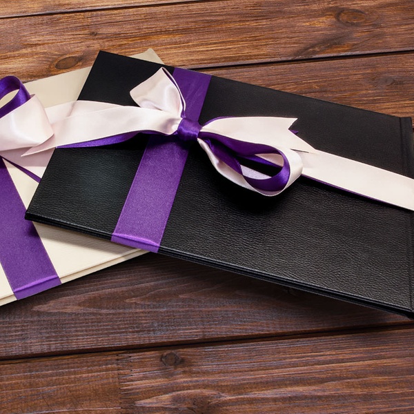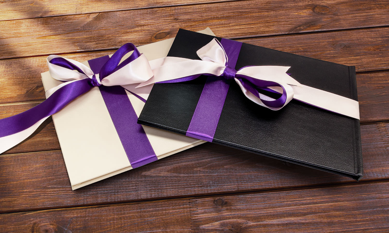 - 1, 2 o 3 álbumes de fotos personalizables A4 modelo Valentina con tapa de cuero negra, con entre 20 y 100 páginas