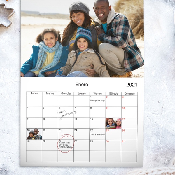 Haz tu propio calendario personalizado. Hasta un 95% de descuento. Personaliza cada mes, fechas como cumpleaños y fecha de inicio.