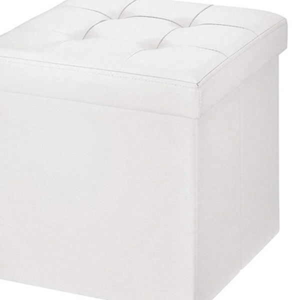 Este elegante asiento reposapiés en forma de cubo tiene un espacio de almacenaje en su interior