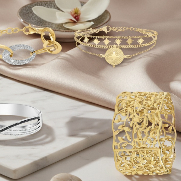 Groupon ofrece esta pulsera con cristales brillantes en dorado o plateado de SC Crystal, vendida por PARIS FOR YOU