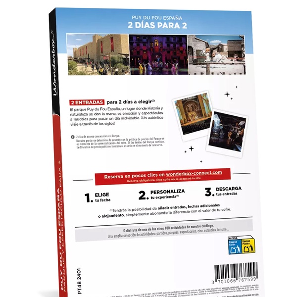 - Atención: Reserva con antelación, la disponibilidad puede cerrarse unos días antes de la fecha elegida, según la política del socio. - El código se activa y es válido en el sitio web de Wonderbox Connect, dentro de las 48 horas posteriores a su compra. Una vez activado, este cofre es válido durante 27 meses en el sitio web de Wonderbox Connect.