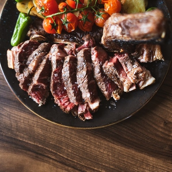 - Chuleta de vaca vieja madurada 45/60 días acompañada con verduras y patatas panaderas