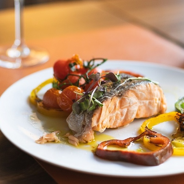 - Salmón: lomos de Salmón a baja temperatura con verduras de temporada