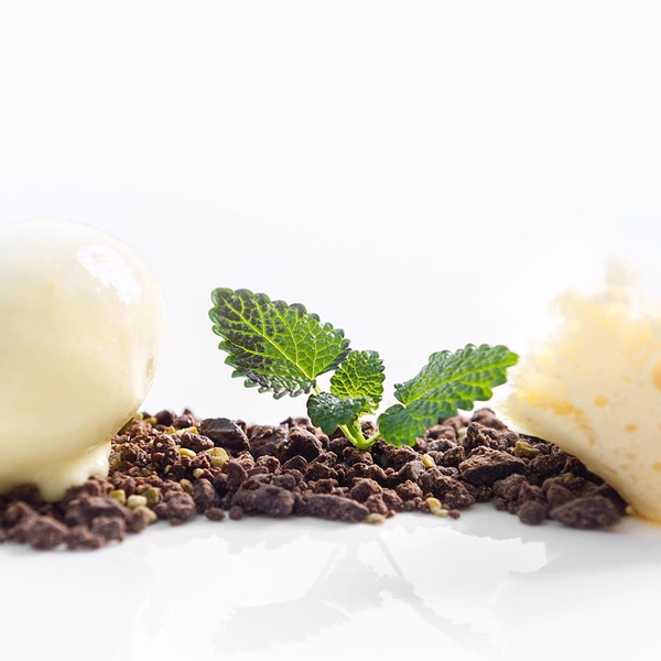 Brioche caramelizado a la vainilla y cardamomo con crema helada de yogur kefir y lima