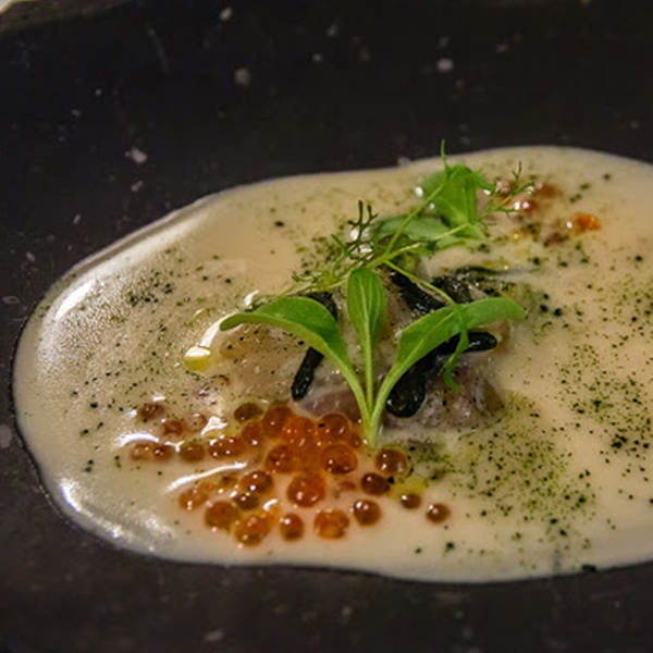 Es un restaurante de cocina autóctona ubicado en la localidad asturiana de Ribadesella, muy cerca del mar. Ofrece una amplia carta elaborada con productos locales como pescados y mariscos del Cantábrico. Entre sus especialidades se pueden degustar el arroz a banda con boletus y sabadiegos, costilla de angus a baja temperatura glaseada en su jugo y lima, crogueta de pitu caleya y pastel de queso, naranja y mango con helado de frutos secos, entre otros. Al mando de su cocina está el chef Bruno Lombán, finalista en numerosos campeonatos de pinchos y minicocina que renueva periódicamente su carta en busca de nuevos sabores y experiencias gastronómicas.
