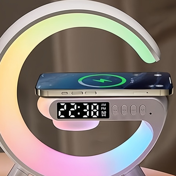 Un solo dispositivo que cubre múltiples necesidades: incluye carga inalámbrica, altavoz Bluetooth, reloj despertador, luz nocturna de ambiente y pantalla de hora