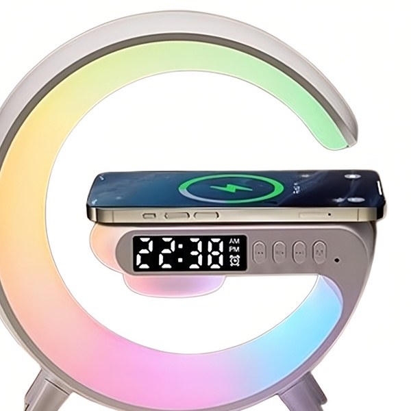Un solo dispositivo que cubre múltiples necesidades: incluye carga inalámbrica, altavoz Bluetooth, reloj despertador, luz nocturna de ambiente y pantalla de hora.