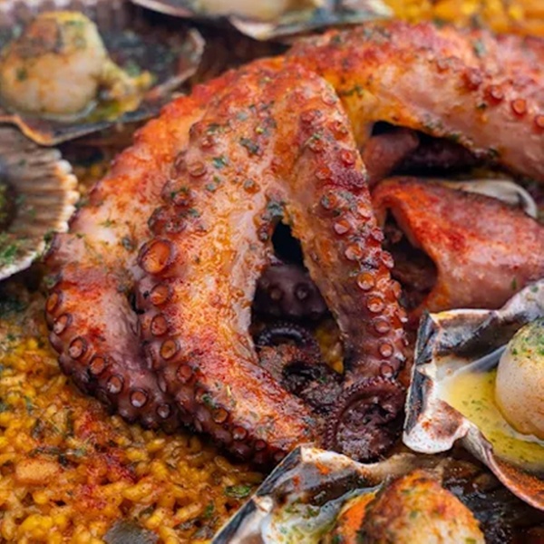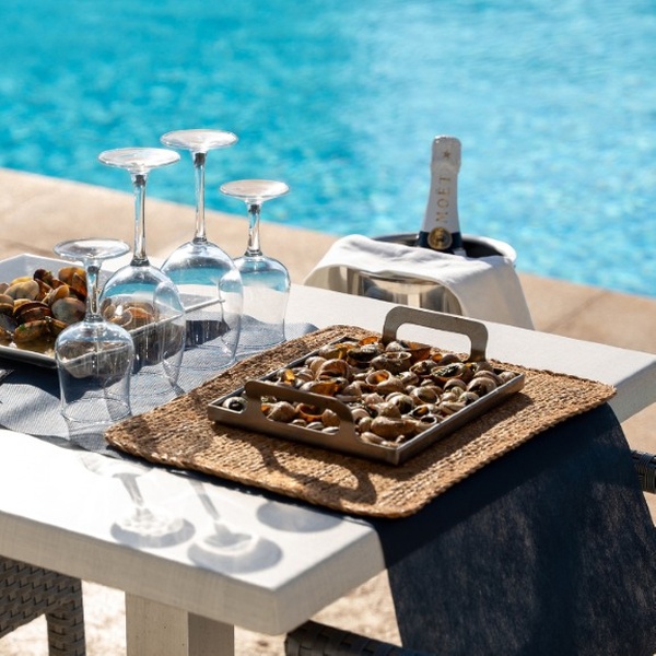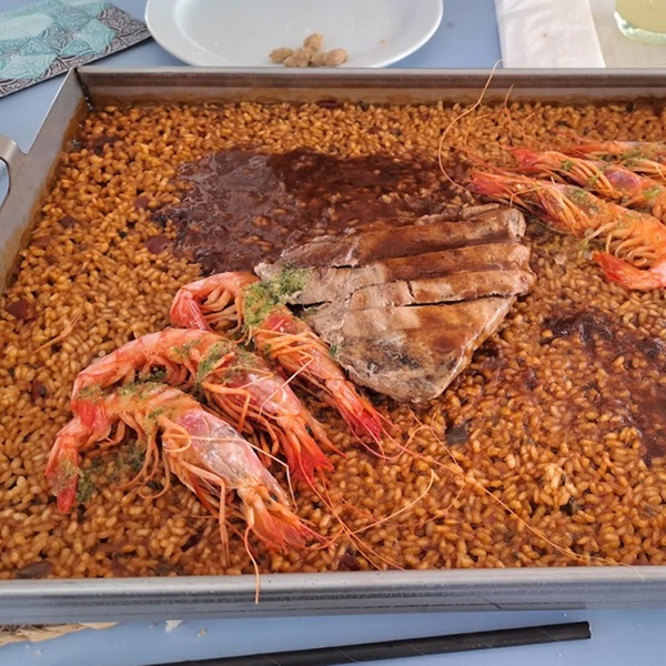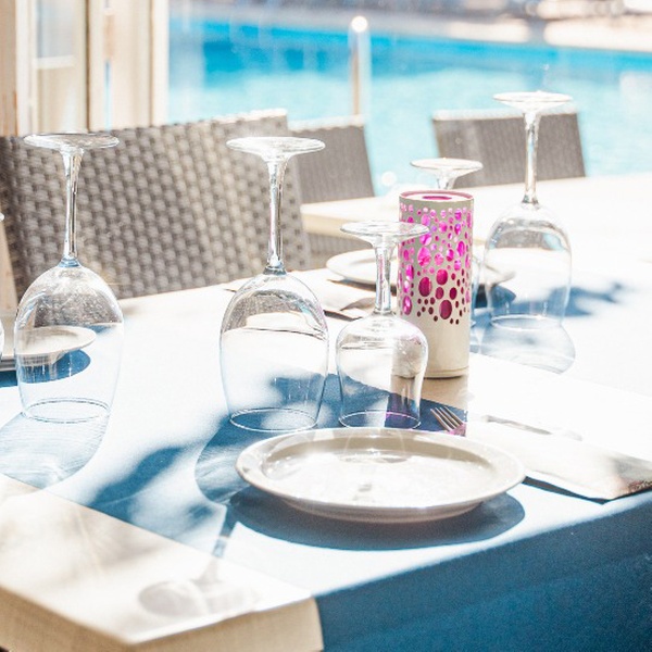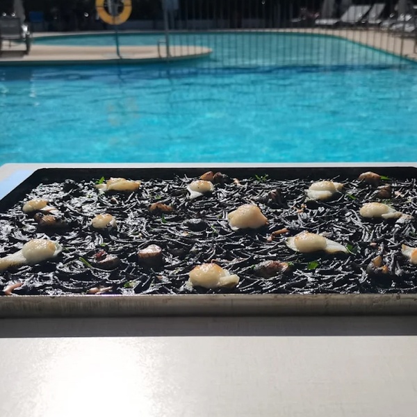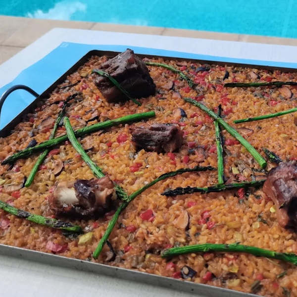 Sumérgete en el ambiente único del restaurante mientras disfrutas de una buena paella, fideuá, carne o mucho más al lado de la piscina